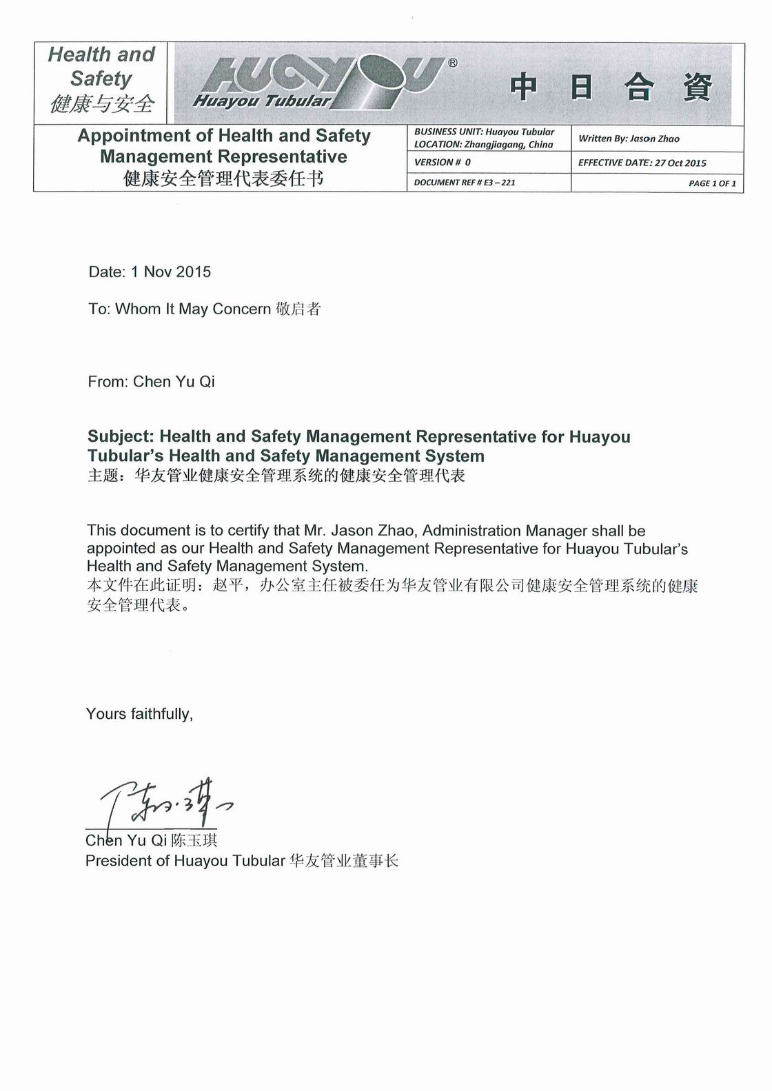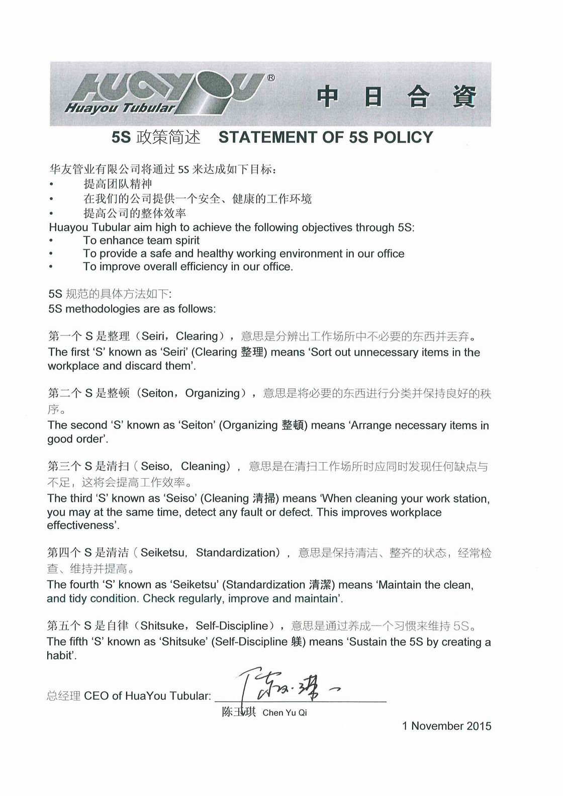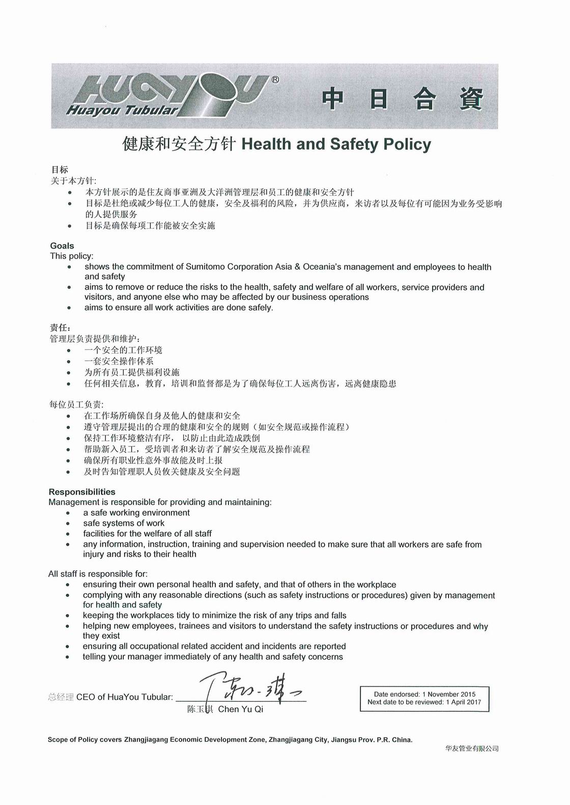 華友HSE政策簽署文件