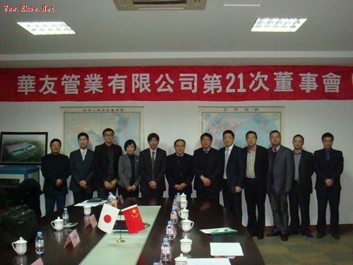3月19日 華友管業有限公司召開第20次董事會,日本住友商事和上海住友商事的董事、監事及代表參加了本次董事會。日本住友商事特殊管事業部現任部長小川隆和上海住友商事現任總經理戶倉健夫首次參加了華友管業的董事會。...